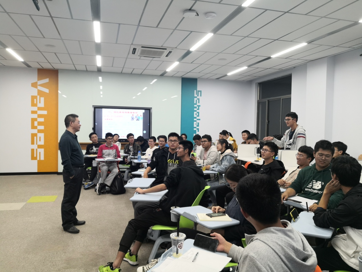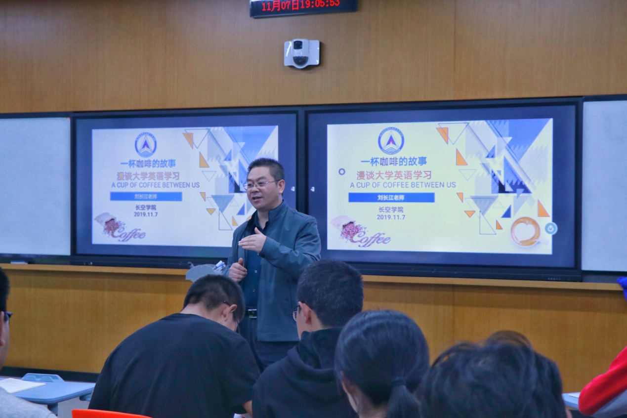 11月7日晚,伟德betvlctor体育官网“一杯咖啡的故事”系列活动之“漫谈大学英语学习”在7407智慧教室举行。外国语学院副院长刘长江围绕大学英语学习定位和学习方法与伟德betvlctor体育官网学生作了三个小时的分享交流。伟德betvlctor体育官网教学办主任张璐、学生事务办公室主任夏昌青及近五十名学生参加。