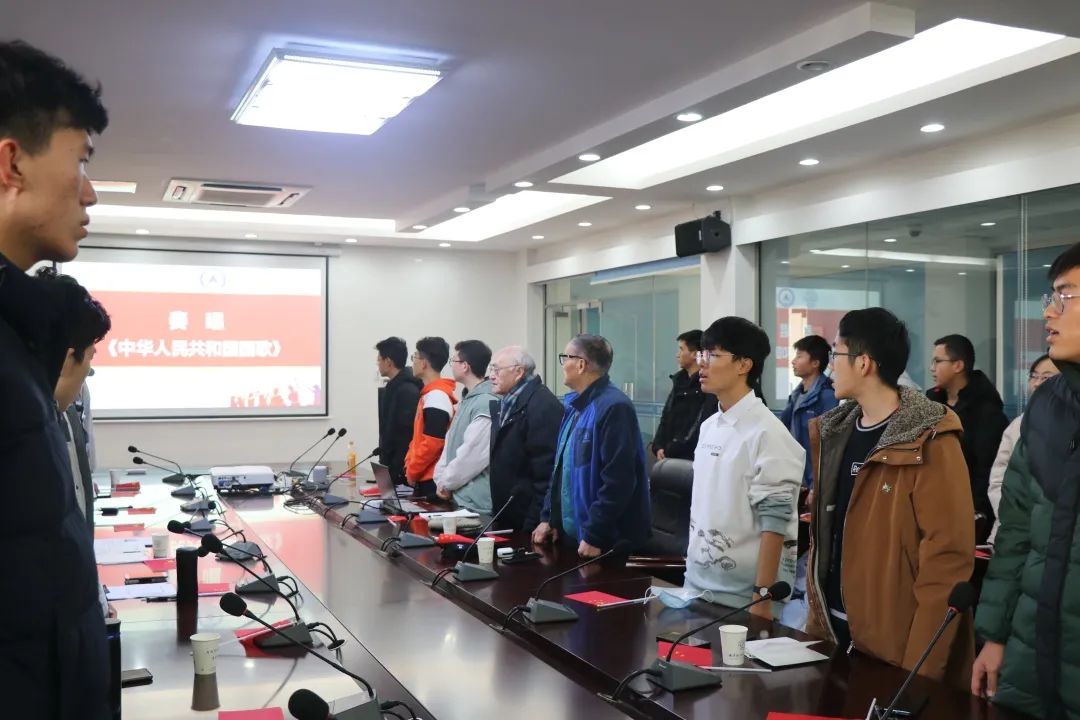 在距离活动正式开始还有30分钟时,同学们便已全部坐定,期待着教授们的到来。活动开始前10分钟,教授们进入会议室,整个会议室里爆发出雷鸣般的掌声。“全体起立,奏唱国歌!”伴随着悠扬的国歌旋律,全体师生挥动着手中的国旗,共同高唱,唱出了南航人的爱国之声。